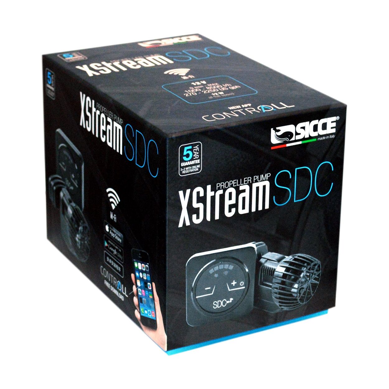 The compact Sicce XStream SDC Propeller Pump is a sleek, powerful pump that simulates the wave motion of a variety of different aquatic environments. Well suited for use in both freshwater and saltwater aquariums and provides exceptional water circulation and improves filter functionality. The unit features a self-cleaning impeller through the internal recirculation of water and uses magnetic rubber support for a tighter, more secure connection with reduced vibration. The easy to clean Sicce Stream SDC Propeller Pump has a flexible 360 degree circular rotation for optimum freedom when positioning the unit inside of the tank. Despite constant pressure and flow, the unit offers wide and gentle flow levels that are ideal for sensitive coral, fry and other small aquatic creatures. Additionally, this unit offers unmatched freedom and customization options when used with the Wi-Fi enabled, compatible app for iOS and Android smartphones. The app allows users to synchronize several pumps as well as preset modes and programs that offer unique calibrated wave functions such as sinusoidal, pulse, lagoonal pool and slow current to name a few. And all this right in the palm of your hand! The pump boasts a stainless steel shaft and ceramic bearings that provide increased safety and durability as well as a chew safe spiral cord cover that prevents chewing or nipping from curious aquatic pets. Has a flow rate of 2250 gph and is incredibly energy efficient at only 12 watts. Ideal for aquariums up to 160 gallons.